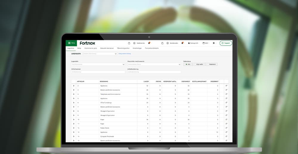 for the different modules in Fortnox.