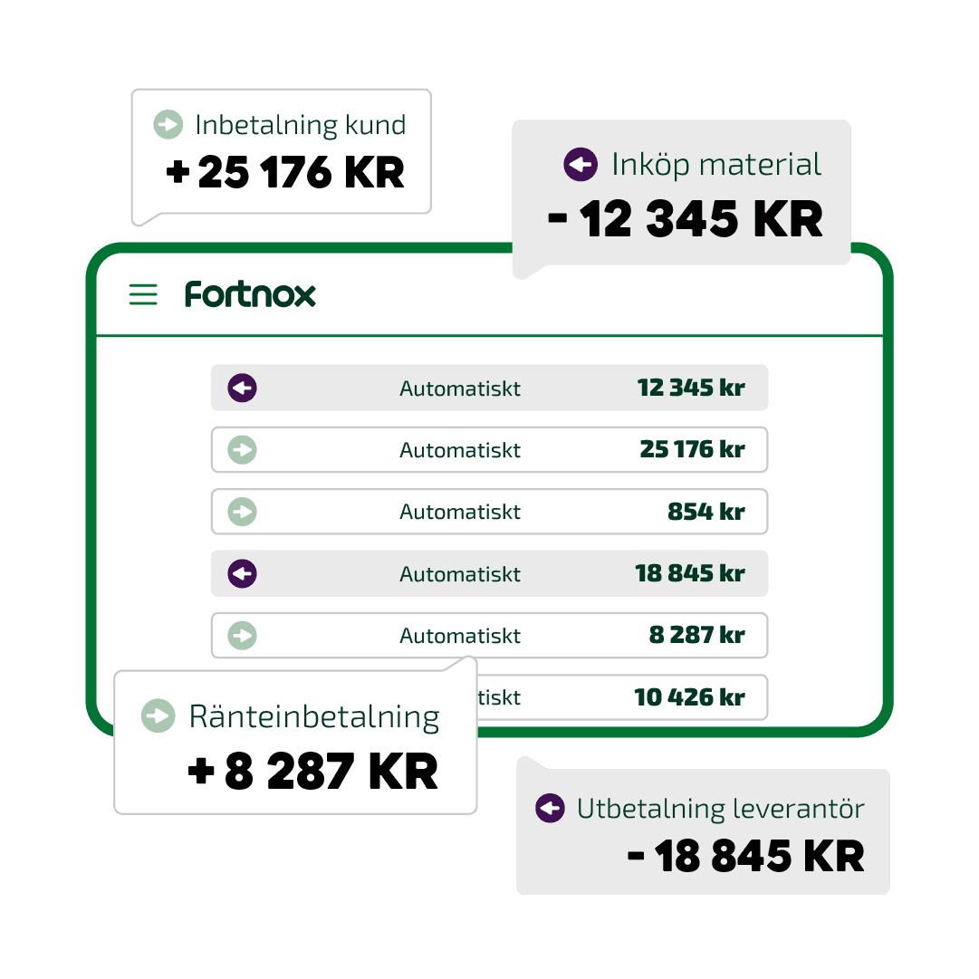 Alla transaktioner på kontona läses automatiskt in i Fortnox.