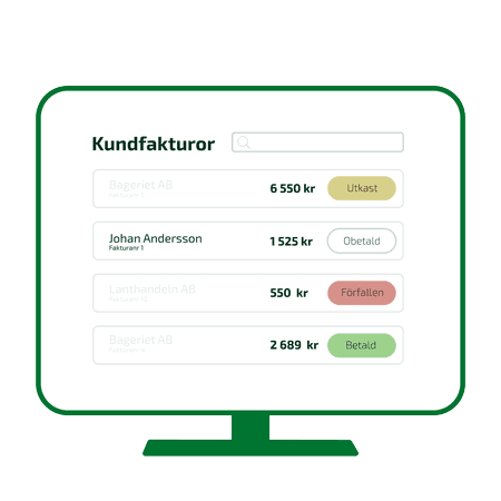 När fakturan är skickad följer du enkelt status i fakturalistan. Allt samlat på ett ställe, helt digitalt.