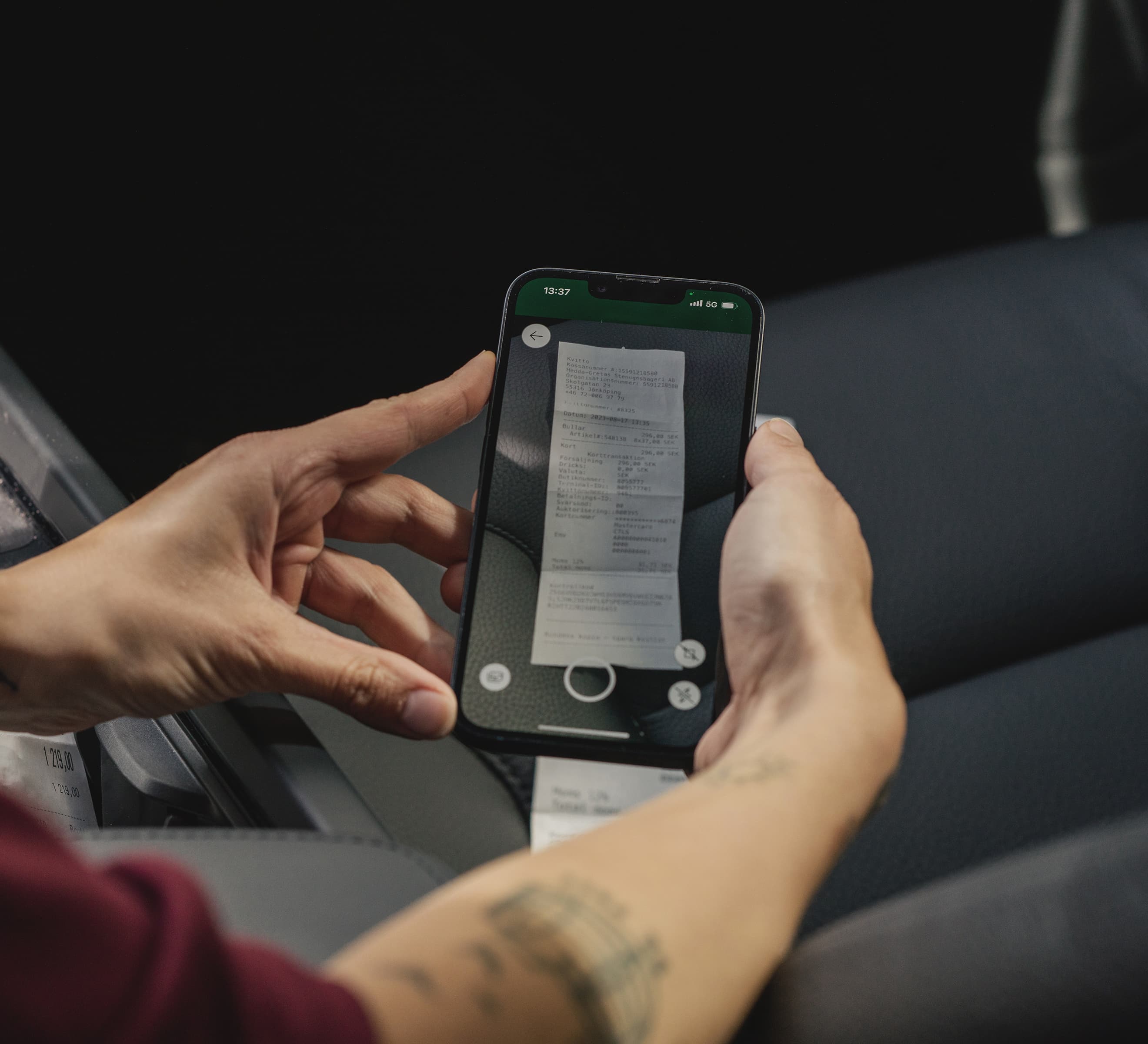 Dina inköp bokförs i samma sekund som du fotar kvittot. Du slipper därmed att importera data eller bokföra manuellt i slutet av månaden.