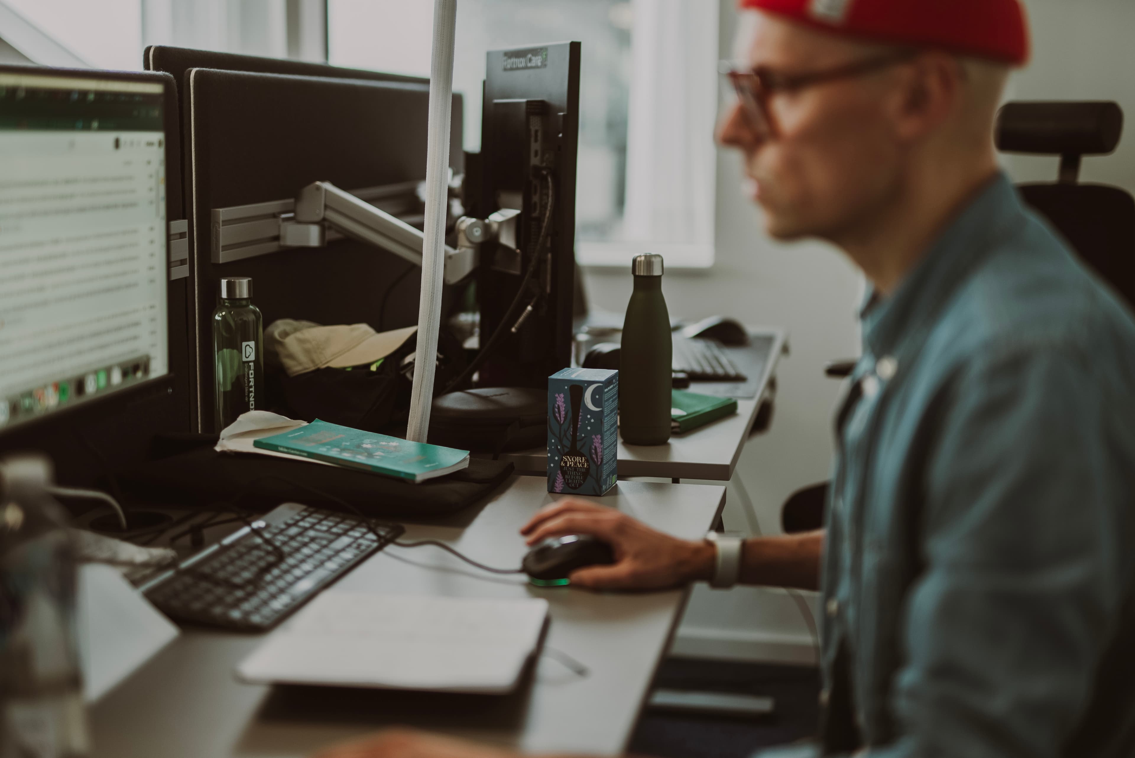 Resan till Fortnox började med ett tips från en före detta kollega. Nu är han lätt att känna igen när han rör sig på kontoret genom de ikoniska fyrkantiga glasögonen och den färgglada mössan. Han kombinerar en finkaffe i receptionen med att följa de senaste trenderna inom martech. Har man tur berättar han om sitt kändismöte i Värnamo med David Hasselhoff.